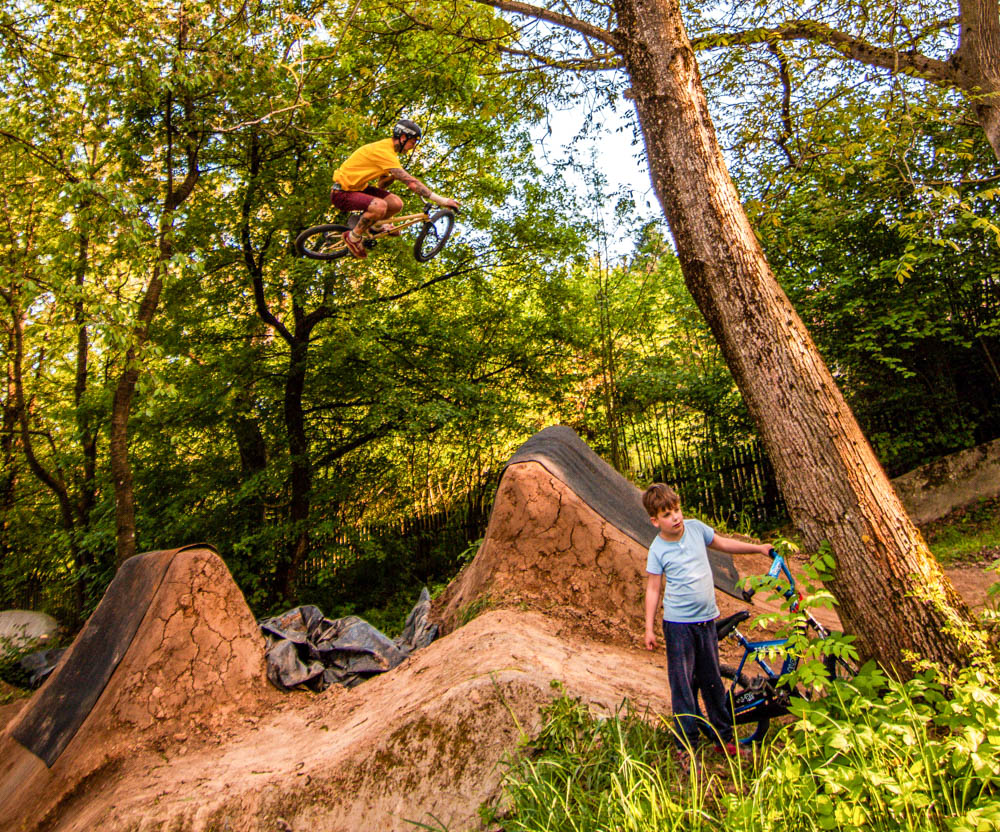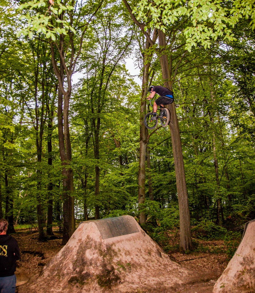 V sobotu vstávačka, naládovat do auta jako vždy nesmysl věcí od piva, přes chlazení a centrálu až po všechno a jede se do lesa. První tam jsme jako vždy já s Kosákem někdy kolem půl 11, svítí slunce a průsekem to praží na starý sezení horní lajny, že to nechceš. Stěhujeme se tedy dočasně dolu k Bordelu, kde je o poznání příjemněji a taky vlhčeji, zatímco nahoře na slunci jsou lajny v sahaře, dole je to tak akorát vlhký. Možná tam jednou uděláme i důstojný sezení. Ladíme skoky a postupně přibývají lidi, hlásí nějaké přeháňky, takže na nic moc nečekat a jde se jezdit. Jede Baby do Ema, Lavice, Levá v luxus šejpu, Dick a Bordel, kromě Svině prakticky celý les. Banda tak možná 20 lidí, jezdíme a jezdíme, vlaky a všechno, rychlý oběd na ohni a znovu jezdíme, dokud nepřichází první přeháňka. Jsme připravení, stavíme párty stan a jsme v cajku. Přestává a session ještě jednou, Bordel jede jedna báseň, Kosák točí 360 coby lokomotiva ve vlaku, dobře von, Kudr dává, Wenca dává, pěkný to je. Přichází další lehký deští a další déšť, po kterým to je už docela punk a nikomu se do toho moc nechce. Hecuju to s Kosákem a Mlaďákem, trochu tuningu a jde Dick, přidává se ještě Kudr a hoblujeme trochu mokrou lajnu, dokud je síla.