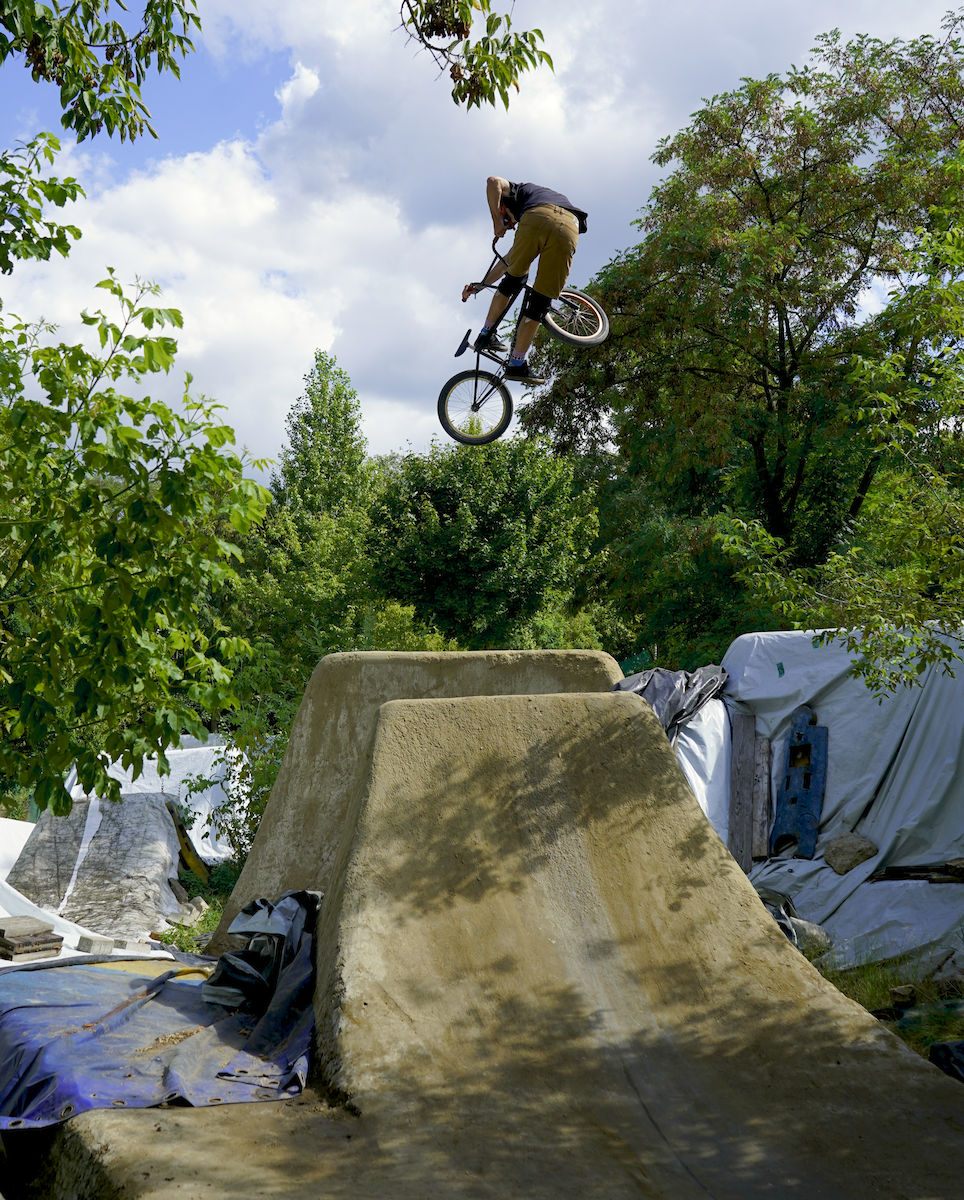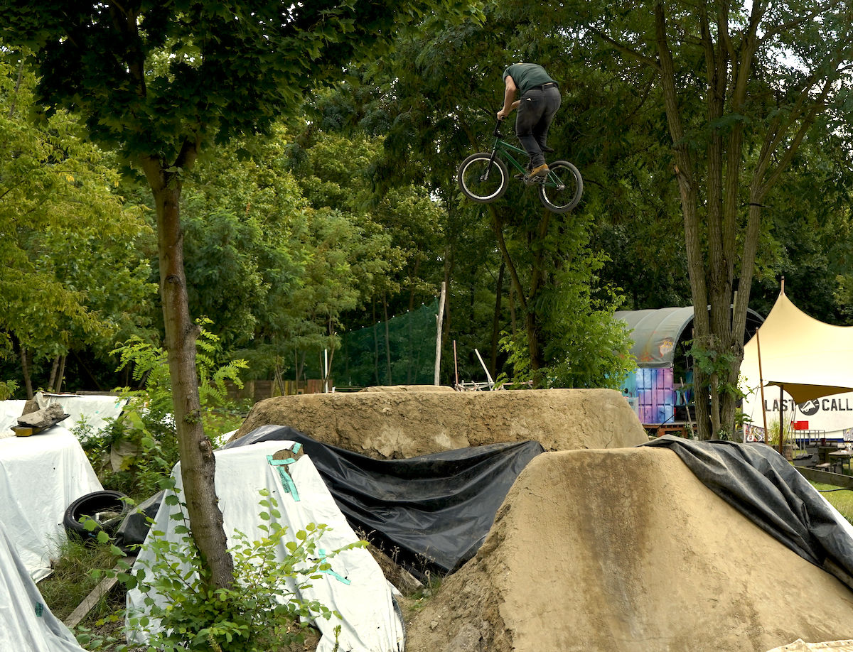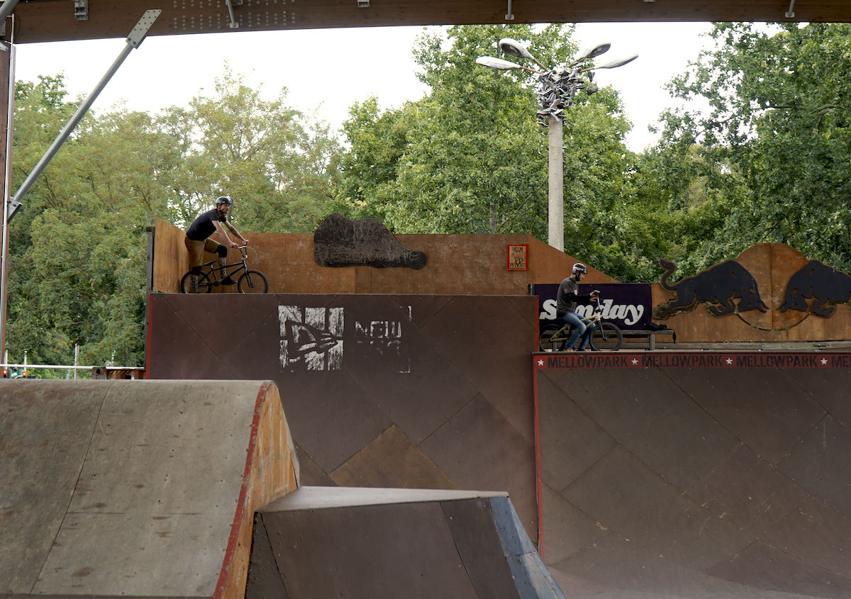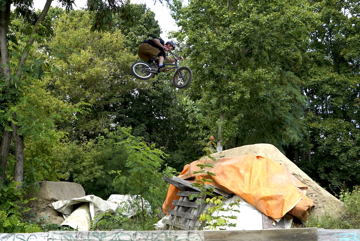 Jelikož nám v roce 2025 nevyšla časově Anglie, rozhodli jsme se dát ještě jednou šanci Berlínu. Bylo to v druhé polovině srpna, týden před suchdolským MČR, kdy jsme si to v sestavě Hout, Mlaďák, Kosák a Pes namířili nach Deutschland. Začali jsme tedy poctivě u Kosáka na Severu, kde jsme poskákali, něco pofotili, zejména Mlaďák tradičně exhiboval a potom se vydali na zastávku v libereckým Azylu. Tam se k nám připojil i Pes s paní Psovou a dávali jsme poctivě dlouho do noci. Další den dopolko odjezd směr Berlín, kde byla první zastávka Wildau trails. A tady přišel první zásek, nad kterým dodnes trochu kroutím hlavou. Vše bylo dohodnuto dopředu, kolem poledne nás měl přivítat hlavní a jediný lokál Daniel. Přišel pozdě, což bychom přežili, ovšem poté, co jsme začali s odplachtováním, přilítl Daniel s vyplašeným výrazem od správce místního areálu jakéhosi domu mládeže nebo co to je, a že prý jsou skoky uzavřeny z nařízení města kvůli chybějící projektové dokumentaci k takové stavbě a že prostě jezdit nesmíme. Ledaže bychom počkali do večera, někdy kolem páté šesté hodiny správce odjede a pak je to na naše triko. Heh, tvl. to jsi nemohl říct dřív? Nemohl, protože Daniel má rozbitý záda, letos na kole ještě neseděl a nevěděl, že jsou trailsy uzavřený. Do prdele. Dáváme poradu a nakonec to balíme, tohle nemá cenu. Dáváme jiný spot nějakých 5 minut odsud, už ho známe z minule, spot zvaný Waldspielplatz, kterýmu dominuje největší step-up, co jsem kdy v životě viděl, a potom jedna lajna spíš menších rozměrů pro nenáročné jezdce. Pozdravíme se s lokálem, okoukneme step-up, který nejede a jdeme zkusit lajnu. Malé, placaté, ale jinak docela zábavné na krátkou session, proč ne. Pojezdíme, něco pofotíme a jedeme do Mellowparku se ubytovat. Večeře, pivka, obhlídka skoků atd., večer utekl jako voda.