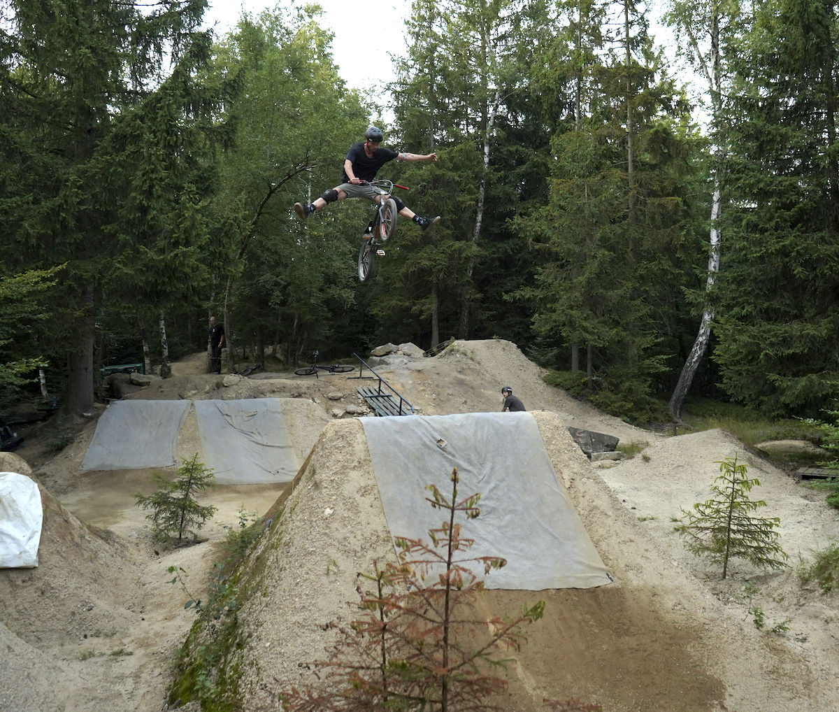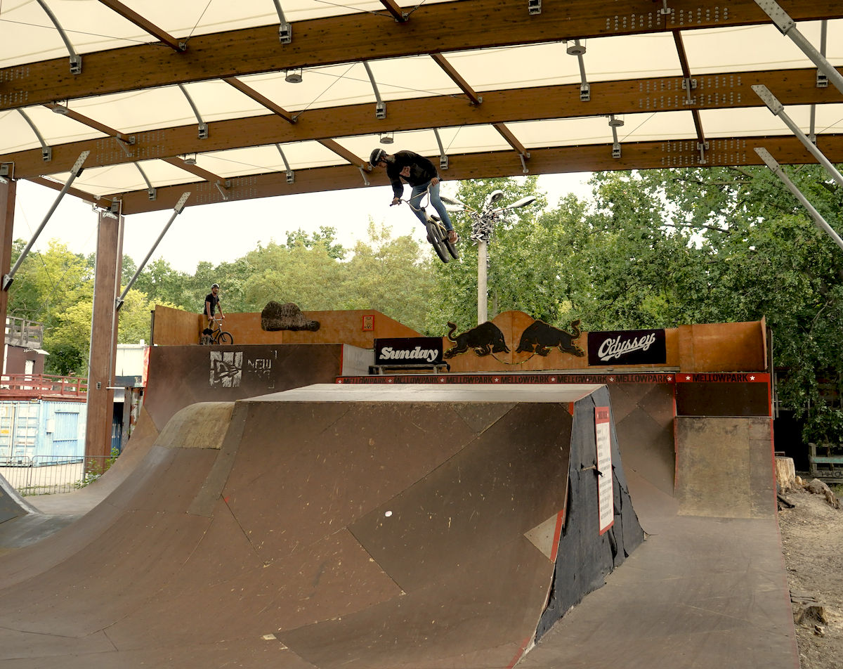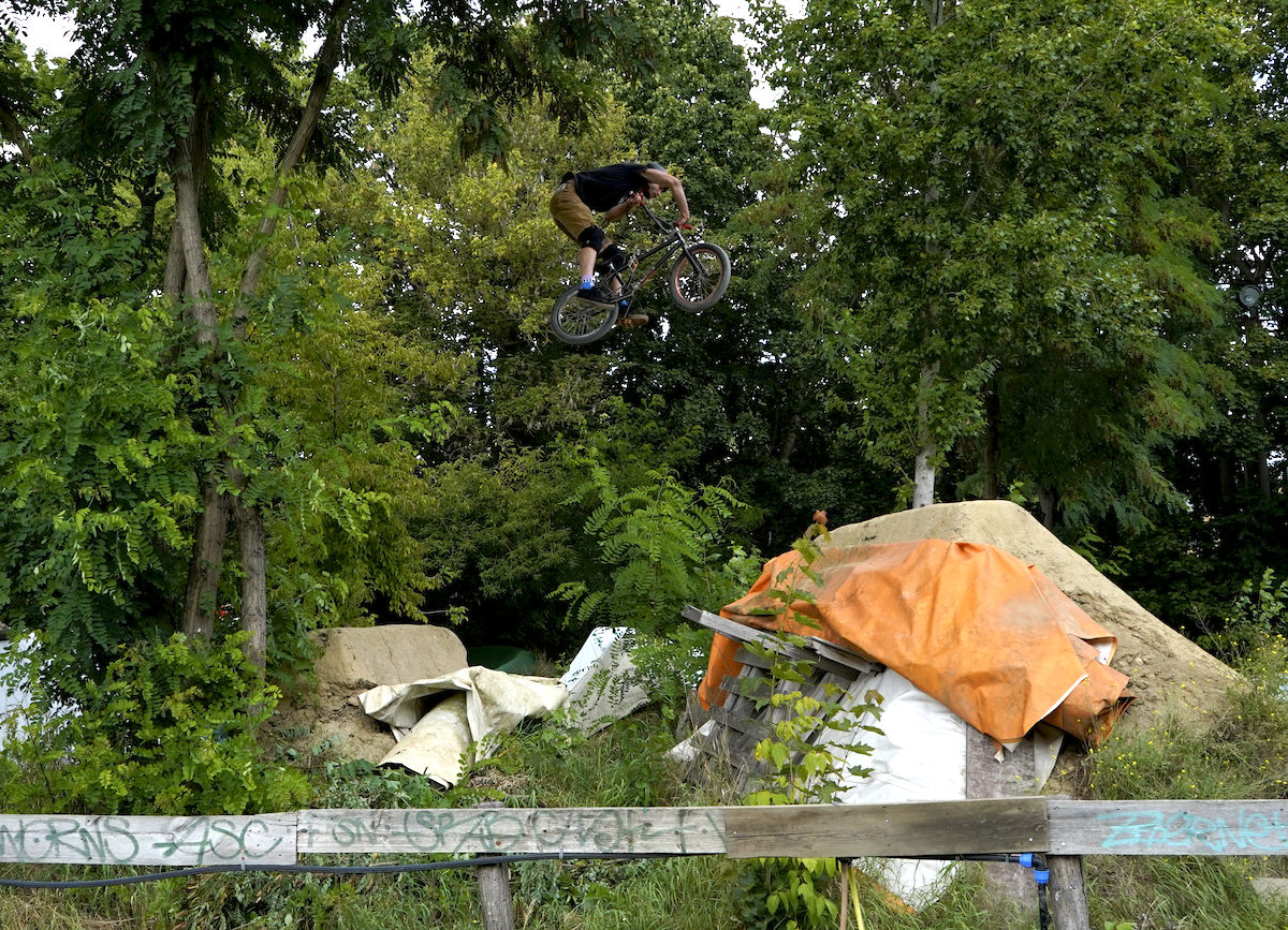 Jelikož nám v roce 2025 nevyšla časově Anglie, rozhodli jsme se dát ještě jednou šanci Berlínu. Bylo to v druhé polovině srpna, týden před suchdolským MČR, kdy jsme si to v sestavě Hout, Mlaďák, Kosák a Pes namířili nach Deutschland. Začali jsme tedy poctivě u Kosáka na Severu, kde jsme poskákali, něco pofotili, zejména Mlaďák tradičně exhiboval a potom se vydali na zastávku v libereckým Azylu. Tam se k nám připojil i Pes s paní Psovou a dávali jsme poctivě dlouho do noci. Další den dopolko odjezd směr Berlín, kde byla první zastávka Wildau trails. A tady přišel první zásek, nad kterým dodnes trochu kroutím hlavou. Vše bylo dohodnuto dopředu, kolem poledne nás měl přivítat hlavní a jediný lokál Daniel. Přišel pozdě, což bychom přežili, ovšem poté, co jsme začali s odplachtováním, přilítl Daniel s vyplašeným výrazem od správce místního areálu jakéhosi domu mládeže nebo co to je, a že prý jsou skoky uzavřeny z nařízení města kvůli chybějící projektové dokumentaci k takové stavbě a že prostě jezdit nesmíme. Ledaže bychom počkali do večera, někdy kolem páté šesté hodiny správce odjede a pak je to na naše triko. Heh, tvl. to jsi nemohl říct dřív? Nemohl, protože Daniel má rozbitý záda, letos na kole ještě neseděl a nevěděl, že jsou trailsy uzavřený. Do prdele. Dáváme poradu a nakonec to balíme, tohle nemá cenu. Dáváme jiný spot nějakých 5 minut odsud, už ho známe z minule, spot zvaný Waldspielplatz, kterýmu dominuje největší step-up, co jsem kdy v životě viděl, a potom jedna lajna spíš menších rozměrů pro nenáročné jezdce. Pozdravíme se s lokálem, okoukneme step-up, který nejede a jdeme zkusit lajnu. Malé, placaté, ale jinak docela zábavné na krátkou session, proč ne. Pojezdíme, něco pofotíme a jedeme do Mellowparku se ubytovat. Večeře, pivka, obhlídka skoků atd., večer utekl jako voda.