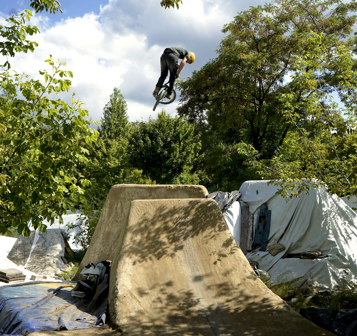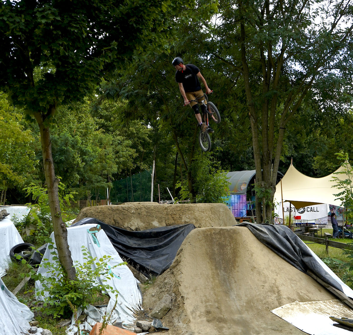Ráno raníčko, kurva hlásili sluníčko, ale sluníčko není a místo toho začíná chcát. Schovat pod střechu místního parku, Mlaďák s Kosákem a Psem to trochu štelují a čekáme, co a jak. Počasí na draka, pět minut slunce, pět minut liják, dnes skoky nepojedou a to je bída. Dáváme gril, kluci ještě nějaký jízdy a odebíráme se do města, mám nějaké tipy na pěkný craft beer bary. Bar jeden, pěkná večeře, bar druhý, ipy a jiný vychytávky ládujeme fest, někdy v noci se valíme zpátky do Mellowparku. Tam se děje nějaká akce, ale securiťáci nás ani za nic nechtějí pustit dovnitř a to už je dost pozdě v noci, nevím, o co jim šlo. Dáváme ještě nějaký pivka u ohně a jde se spát. V neděli počasí drží, ale já jsem out a celkově je potřeba se chystat na cestu domů. Přesto se vyjedná session na místních trailsech, kdysi mi to přišlo super zajímavý místo, teď už zase tolik ne. Kdyby bylo odkryto vše a jelo vše, možností mraky, spot rozhodně stojící za pozornost. Ovšem to se děje tak jednou do roka, skoky jsou zakrytý těžkými plachtami s německou precizností a odkrývání a následné zakrývání je práce po kokot. Odkryje se tedy hlavní lajna, asi 6 nebo sedem skoků víceméně na placce, což je největší bolístka spotu. Mlaďák s Kosákem a Psem nějak proskákávají, žádné velké nadšení neprojevují, já beru foťák a něco fotím. Session tak hoďka a půl možná dvě, balíme to a chystáme na cestu domů, přeci jen to není za rohem.